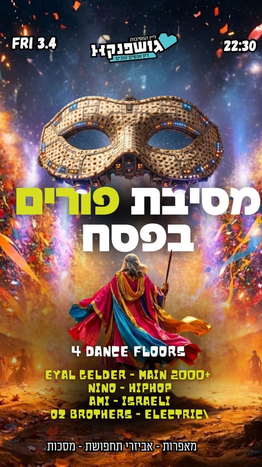 פורים פוגש את פסח, המסכות עולות, הרחבות מתמלאות והלילה רק מתחיל.