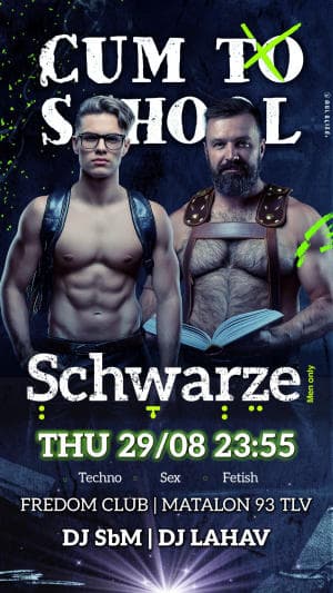 השוורצע סוגרת לכם את החופש הגדול ומחזירה אתכם ללימודים. במסיבה הכי סקסית, מופרעת וחסרת חינוך שיש.