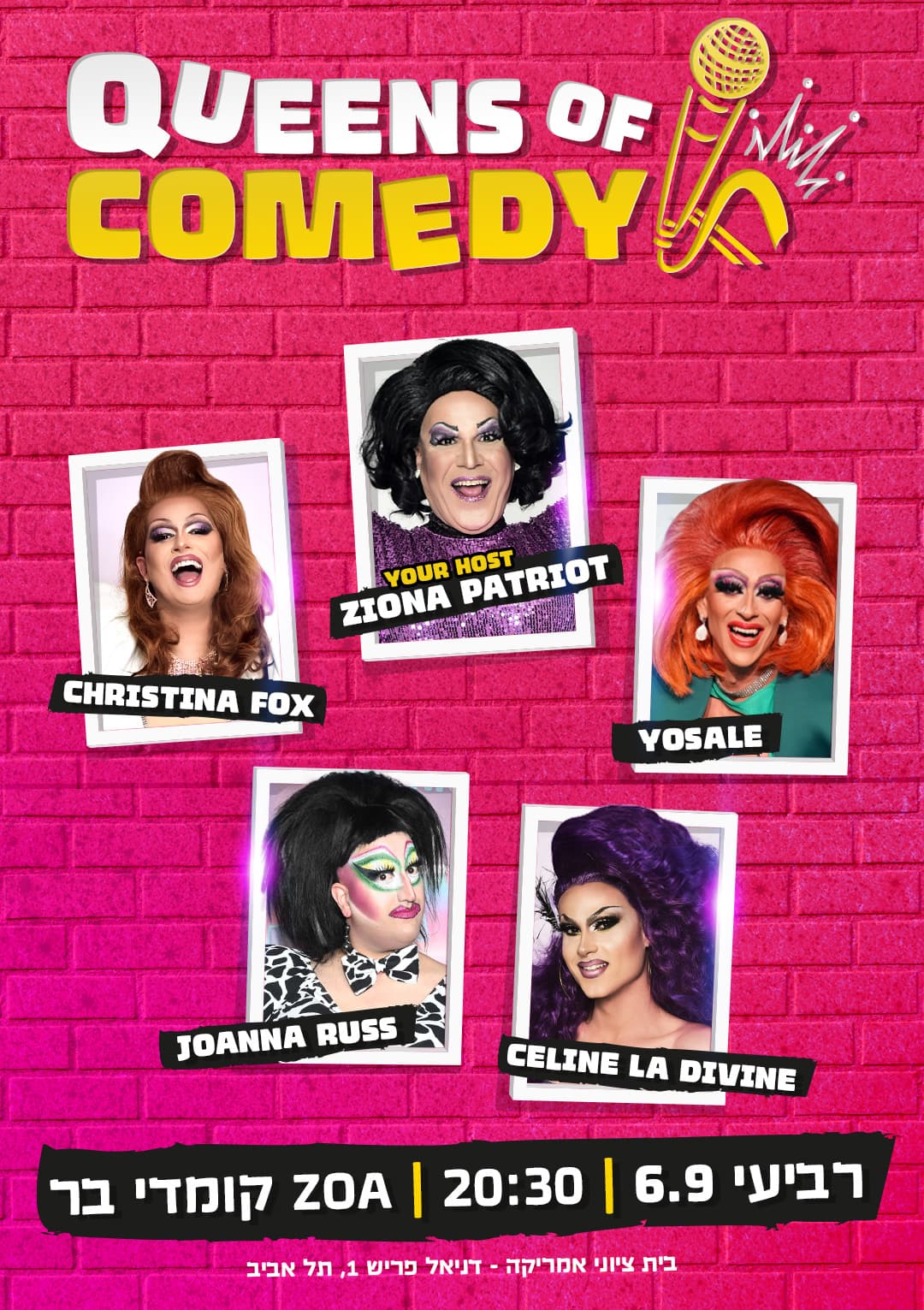 על הבמה תפגשו את ציונה פטריוט, יוסל׳ה, סלין לה דיווין, ג׳ואנה ראס וקריסטינה פוקס כשלכולן מטרה אחת ברורה - להפיל אתכם לרצפה!