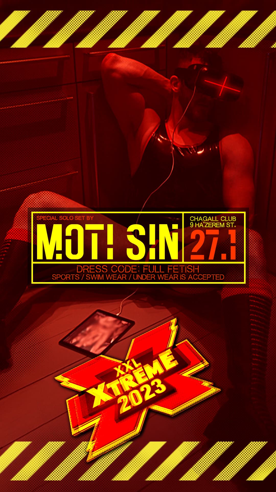 DRESS CODE: FULL FETISH ( SPORTS FETISH LABELED SETS or SWIM / UNDER WEAR is OK!)