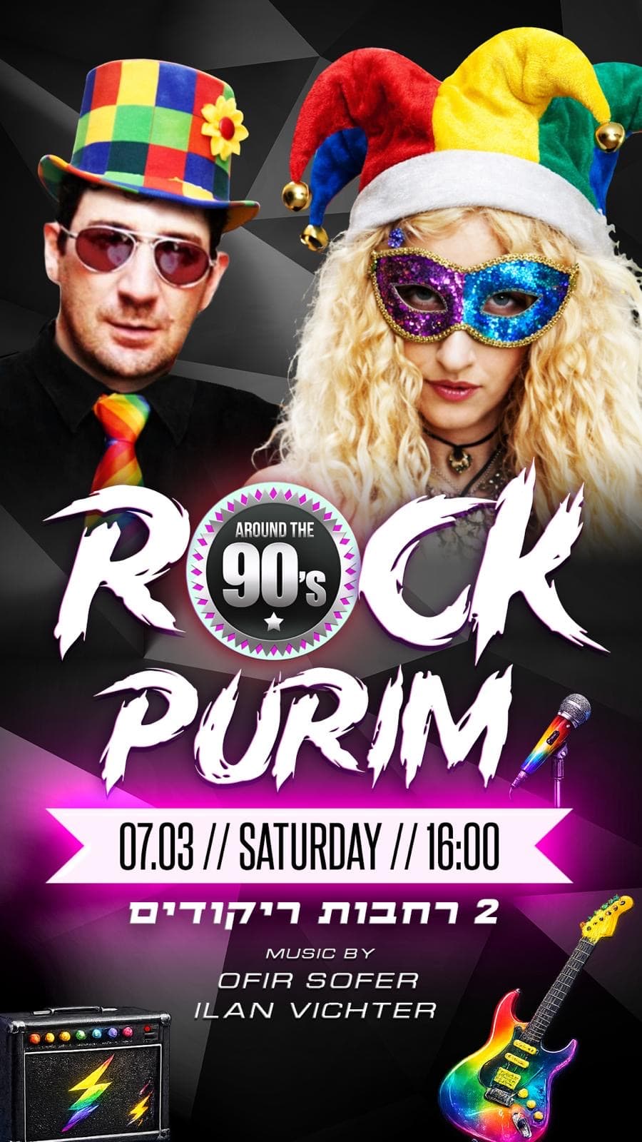 אנו נרגשים להזמינכם לנשף רוק פורים המסורתי של מסיבות שנות ה-90
