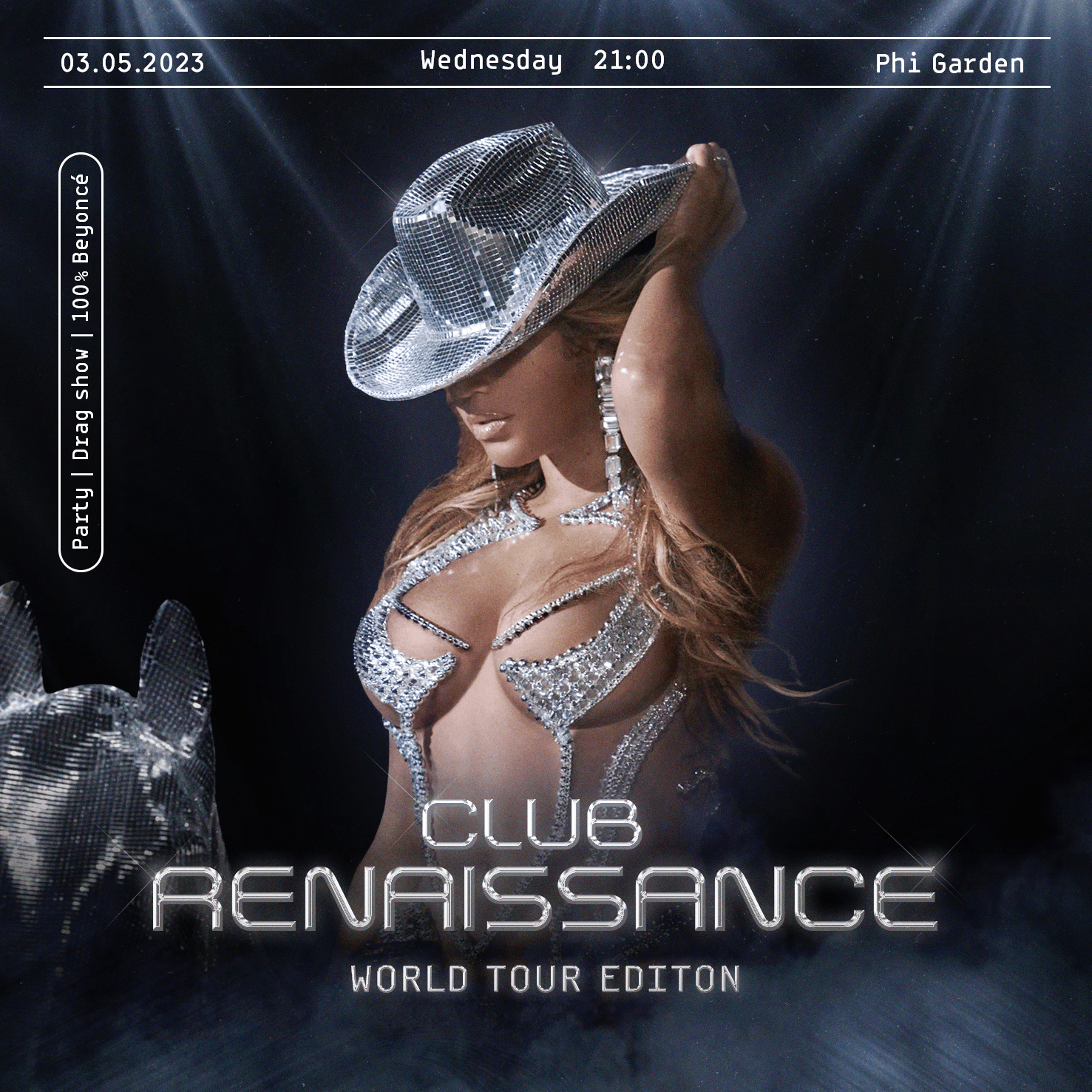 -מסיבת ׳קלאב רנסנס׳ באה לחגוג חופש, קוויריות ואהבה על רחבת הריקודים ובמרכזה את האלבום ׳רנסנס׳. כאשר ביונסה הכריזה על מסיבות ׳קלאב רנסנס׳ ברחבי העולם, מסיבות השמעה של האלבום מתתחילתו עד סופו, מעריצים רבים רצו להצטרף לחוויה ויצרו מסיבות פרטיות משל עצמם. כאן אנחנו מצטרפים ומביאים את אותה חוויה צבעונית לתל אביב. 💫